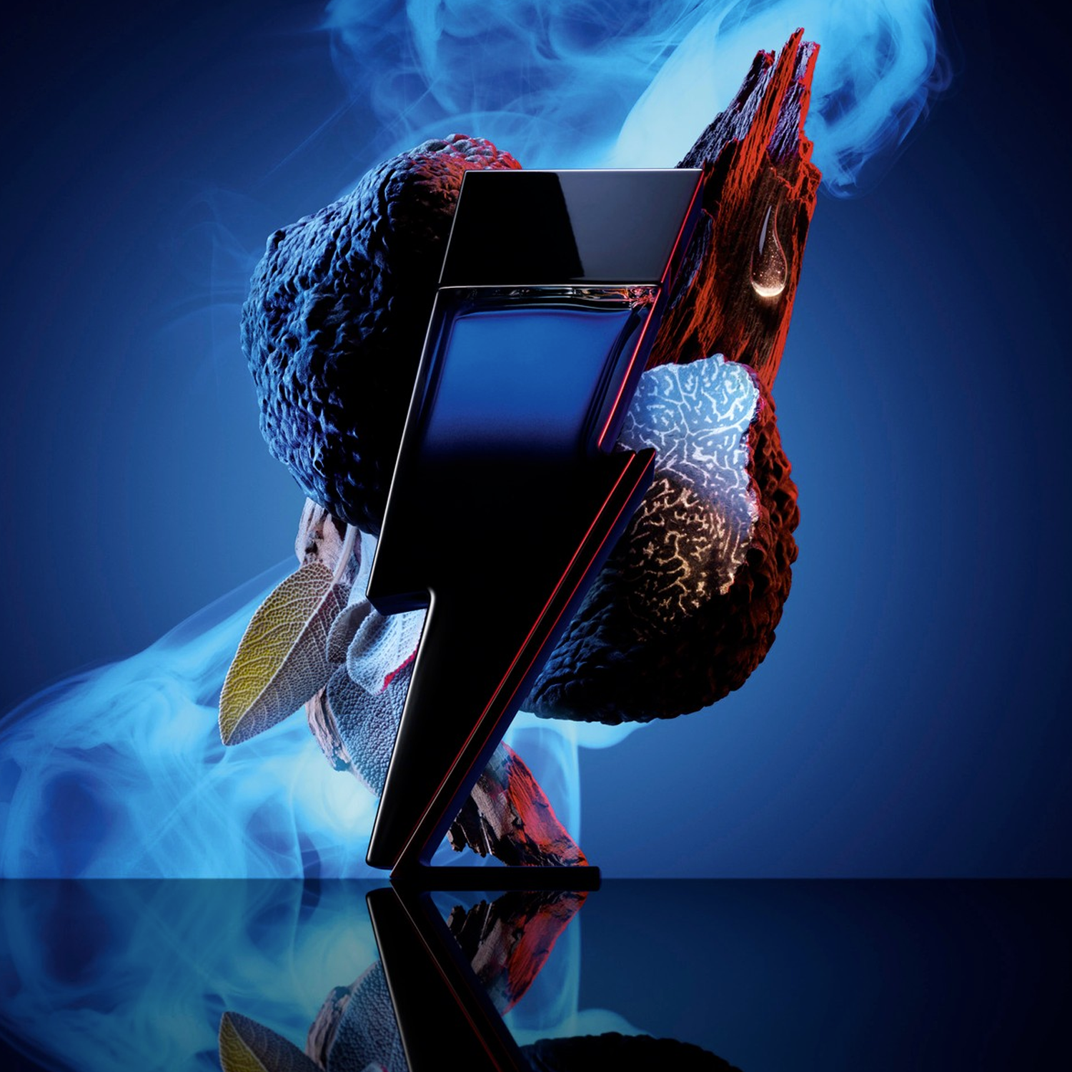 The Bad Boy Cobalt bottle design is a true work of art featuring the brand's signature lightning bolt silhouette in a stunning blue-to-black gradient. This innovative bottle design symbolizes the electrifying duality of modern masculinity - the perfect balance between light and dark, fresh and intense, making it a conversation starter and collectible piece.